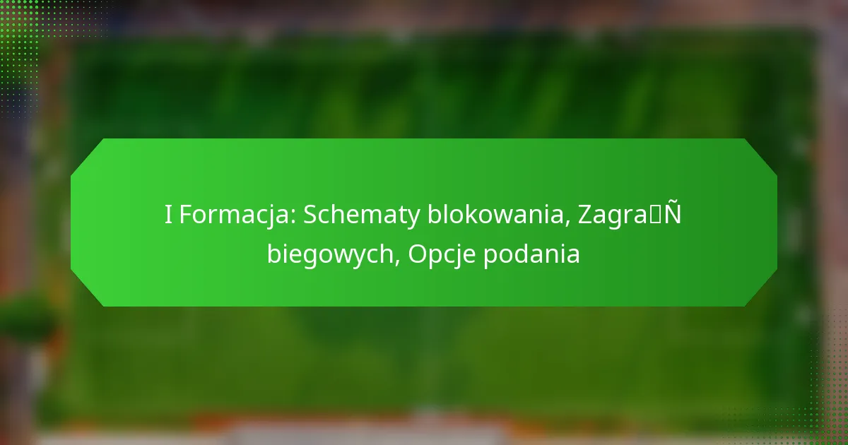Schematy blokowania w Formacji I określają, jak linemen ofensywni współdziałają z obrońcami, aby stworzyć otwarcia dla nosiciela piłki. Dwa główne typy to blokowanie strefowe i blokowanie indywidualne, z których każdy służy różnym celom strategicznym. Blokowanie strefowe koncentruje się na tworzeniu korytarzy poprzez poruszanie się w jedności do wyznaczonego obszaru, podczas gdy blokowanie indywidualne przypisuje konkretne obrony do każdego linemana.